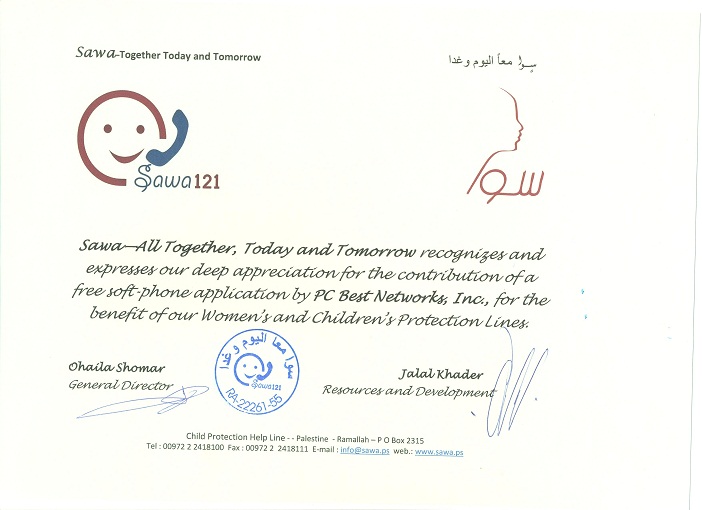 Latest News: PC Best Networks Supported and helped SAWA, a nonprofit organization and a member of Child Helpline international, to build SIP softphone for their Call Center to help children.